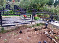 Выкапываем между захоронениями траншеи, между получившимся холмами ввариваем надёжный каркас в четыре арматурных кольца.