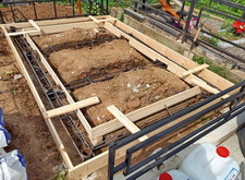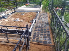 Подготавливаем территорию вокруг места захоронения к покрытию брусчаткой: ввариваем металлическую полосу и укрываем землю геотекстилем.
