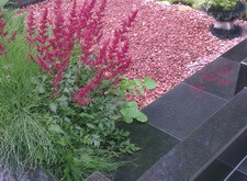 Гранит, крошку помыли. Цветник и можжевельники почистили от сорняков. Цветы и вечнозелёные полили. Могила в полном порядке.