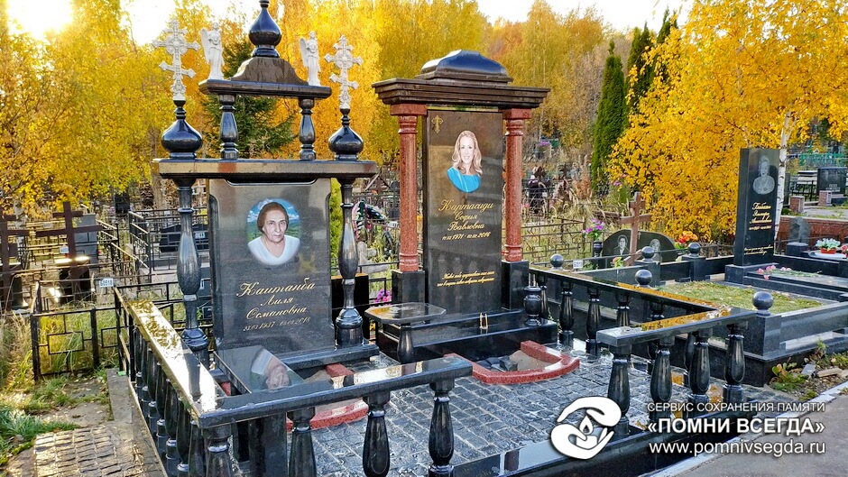 Начинается процесс монтажа. Доставляем памятники, крепим их, приклеиваем и насаживаем на штыри все конструктивные элементы надгробий.
