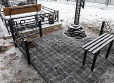 Изготовлены элементы ограждения Установлена лавочка Создана голгофа из натуральных камней Уложена гранитная брусчатка