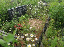 Здесь нам предстояло убраться на неухоженной могиле. Таково было её состояние до наведения порядка: через плитку пробилась трава, могила запылились.